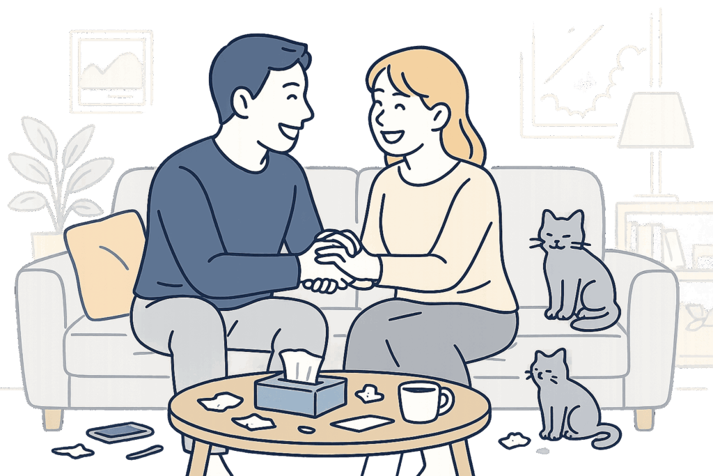 夫婦喧嘩をしてしまった後、なかなか仲直りできず、もやもやとした気持ちを抱えたまま過ごしていませんか?「本当は早く元に戻りたい」「でも、どんなふうに声をかけたらいいのか分からない」と悩む方は、実はとても多いものです。 長く一緒にいる夫婦だか... -
